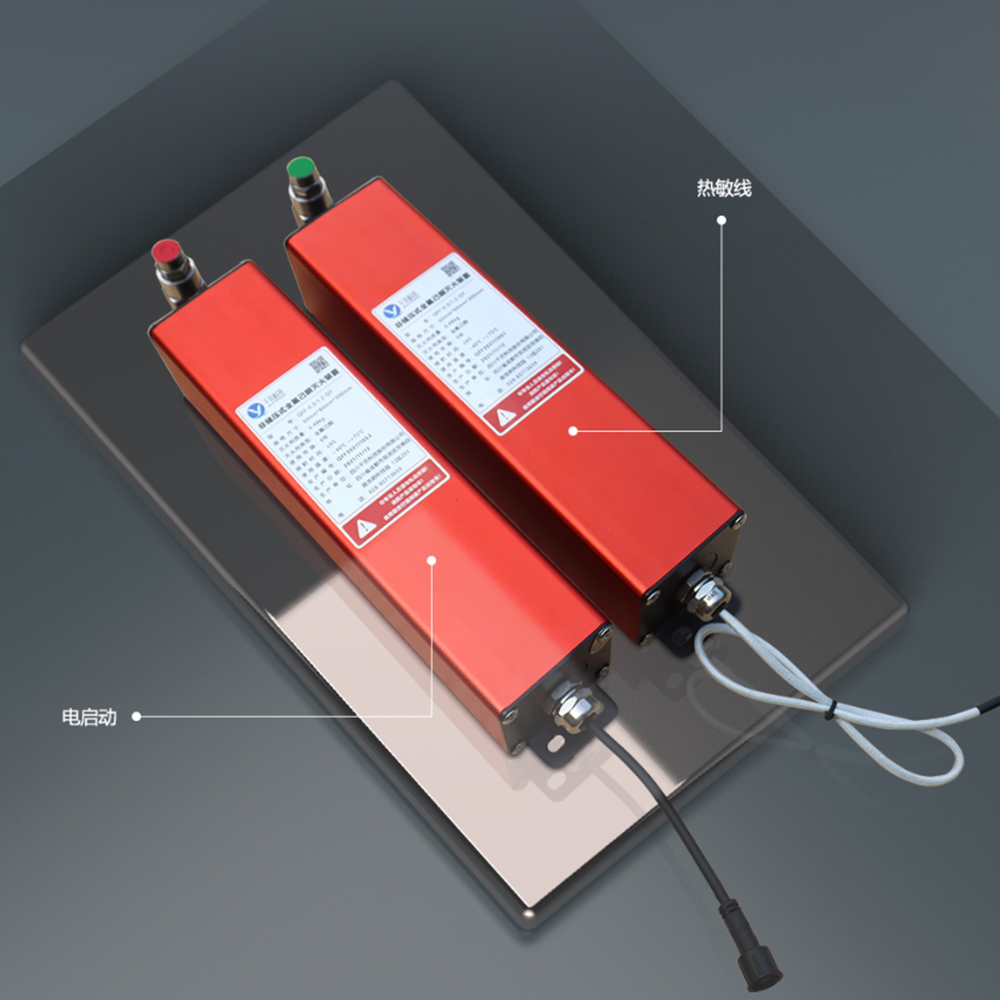 其内部在常温下是无压状态,在接收到外部感温启动元件或电启动元件的信号时,装置内部的驱动模组将瞬间产生大量气体驱动全氟己酮药剂瞬间喷出雾化进行降温抑制灭火,是专门针对小型空间以及特定空间进行火灾防护的一种新型灭火装置。该装置采用小型化设计、模块化组装,既可单套使用,也可多套联动使用。